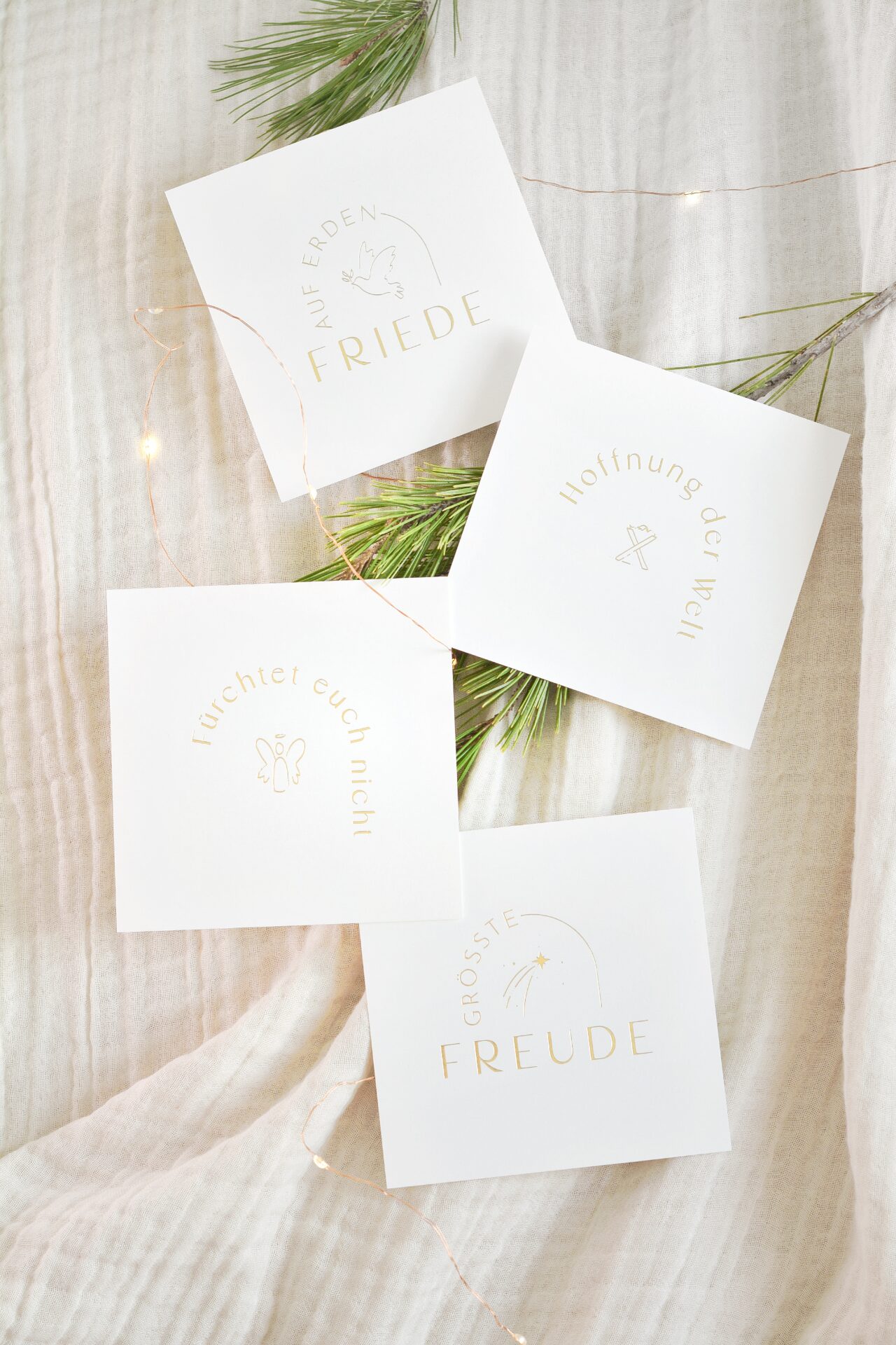 4 Karten 12,1 x 12,1 cm aus hochwertigem Naturpapier 300g, warmweiß